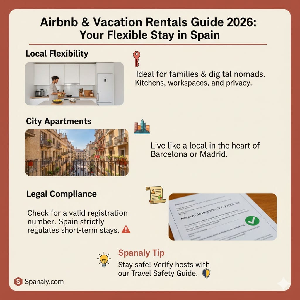 📜 Legal Compliance: Ensure your rental has a valid registration number (Número de Registro), as Spain has strictly regulated short-term stays in 2026.