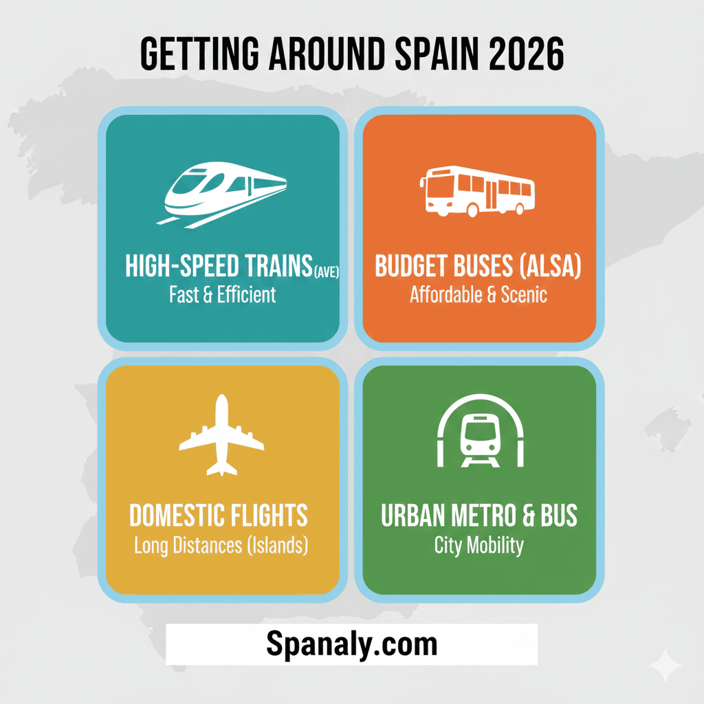 🚄 High-Speed Trains (AVE): The gold standard for travel between major hubs like Madrid and Barcelona. It’s often faster than flying!