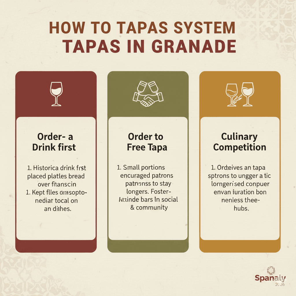 Eating tapas in Granada follows a specific, unwritten code. To enjoy the experience like a local in 2026, you just need to understand the flow of the service. It is simpler than it looks, and the rewards are delicious, perfectly reflecting Spain’s Daily Rhythm of slow and social dining.