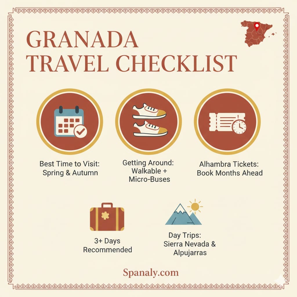 | 🎟️ | Alhambra Booking | Crucial: Reserve tickets months in advance. They sell out rapidly as it is one of the most visited sites in Europe. |