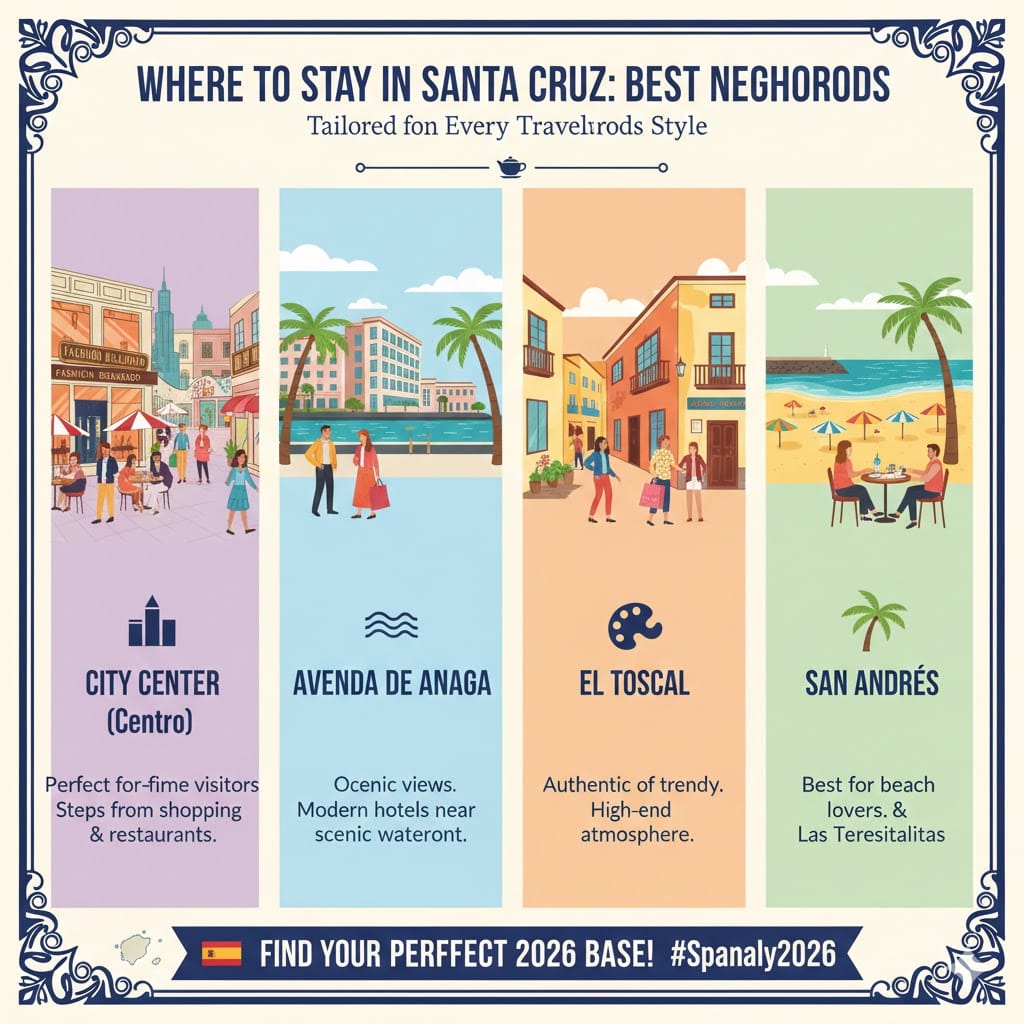 Navigating Santa Cruz is smooth and enjoyable. The city is designed for easy movement. Whether you walk or use public transport, everything is very efficient. If you know how Getting Around Madrid works, you will find this coastal city even easier. It is a stress-free destination for 2026.