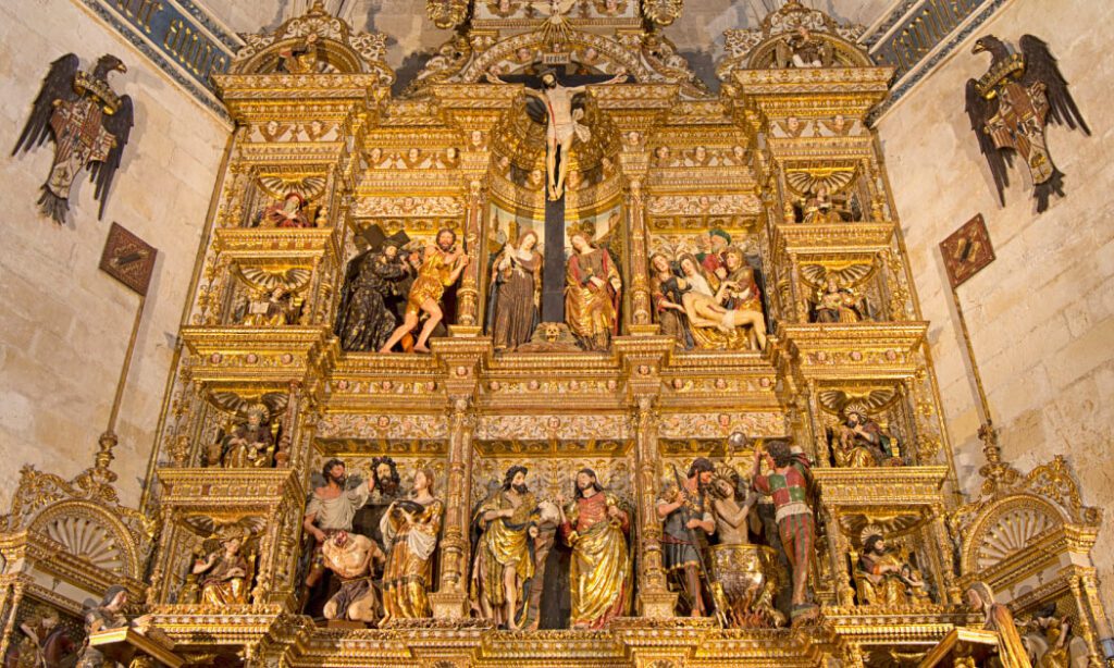 A colossal altarpiece 20 meters high and 23 meters wide, it took nearly 80 years to complete. Covered in gold leaf, it depicts 45 scenes from the life of Christ, making it the largest Gothic altarpiece in the world.